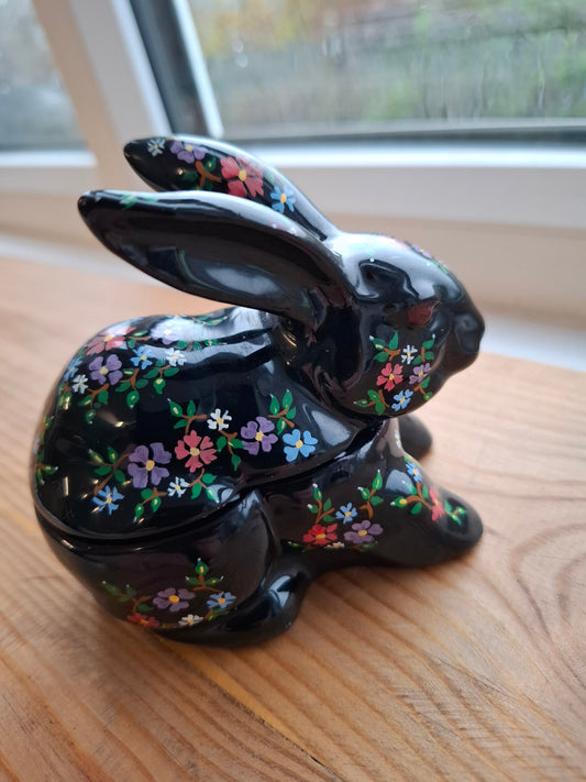 'Cunt' Upcycled Black Floral Rabbit Trinket Pot