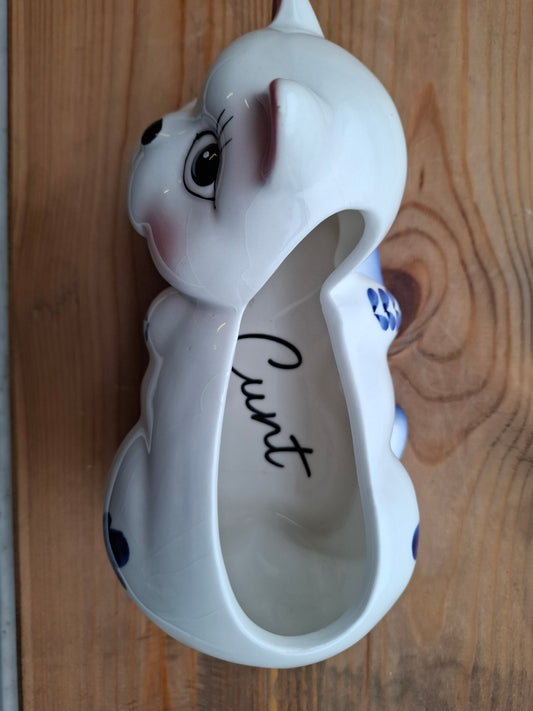 'Cunt' Upcycled Large Creepy Cat Ceramic Ornament Pot