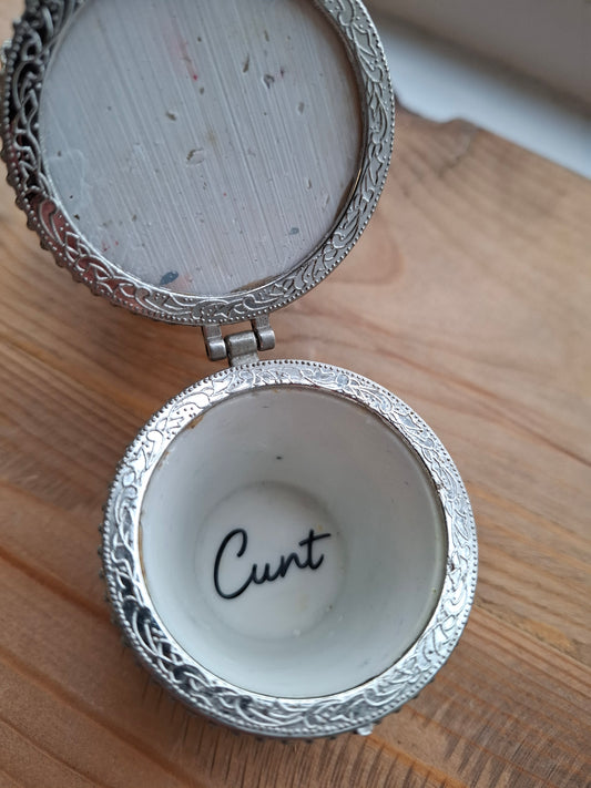 'Cunt' Upcycled Floral Trinket Pot With Clasp