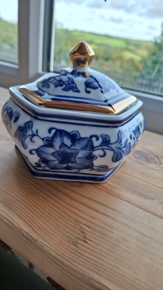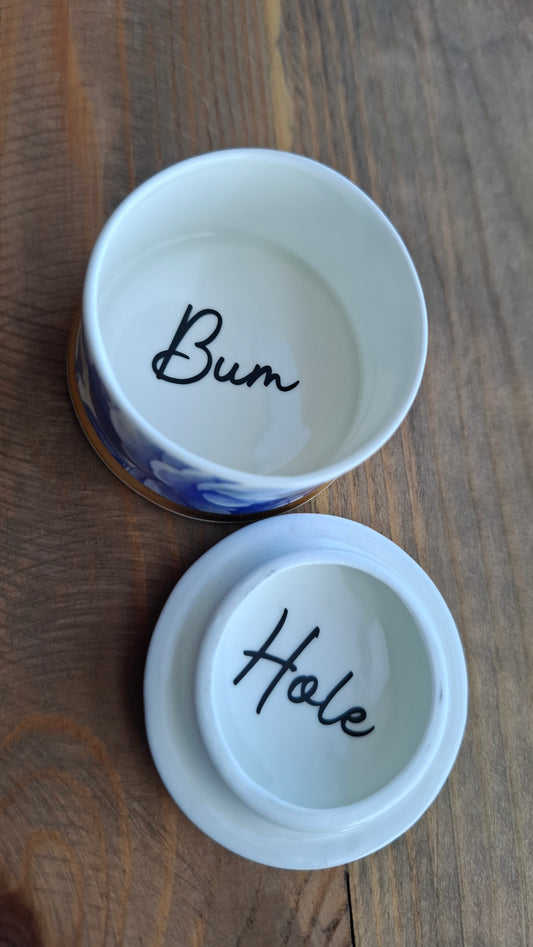 'Bum Hole' Upcycled Blue And White Pattern Trinket Pot