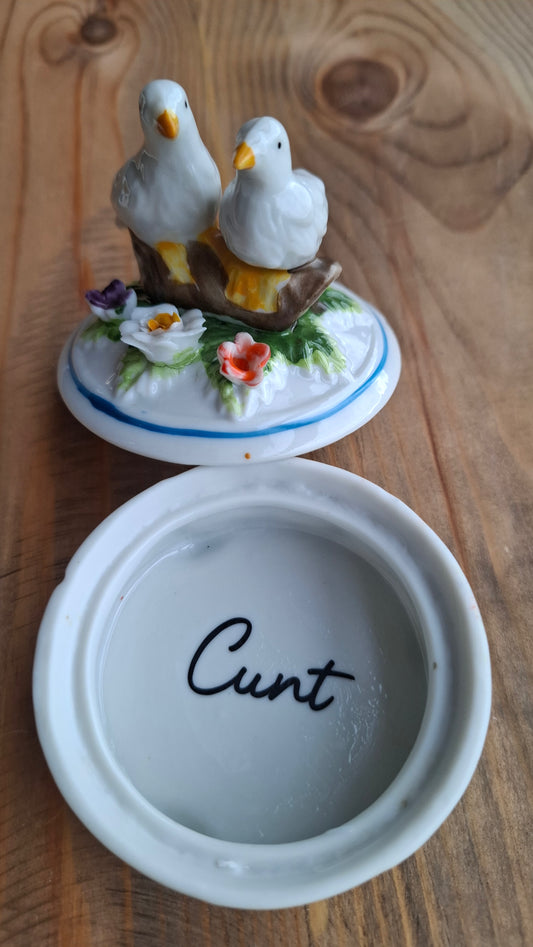 'Cunt' Upcycled Handpainted Birdy Trinket Pot