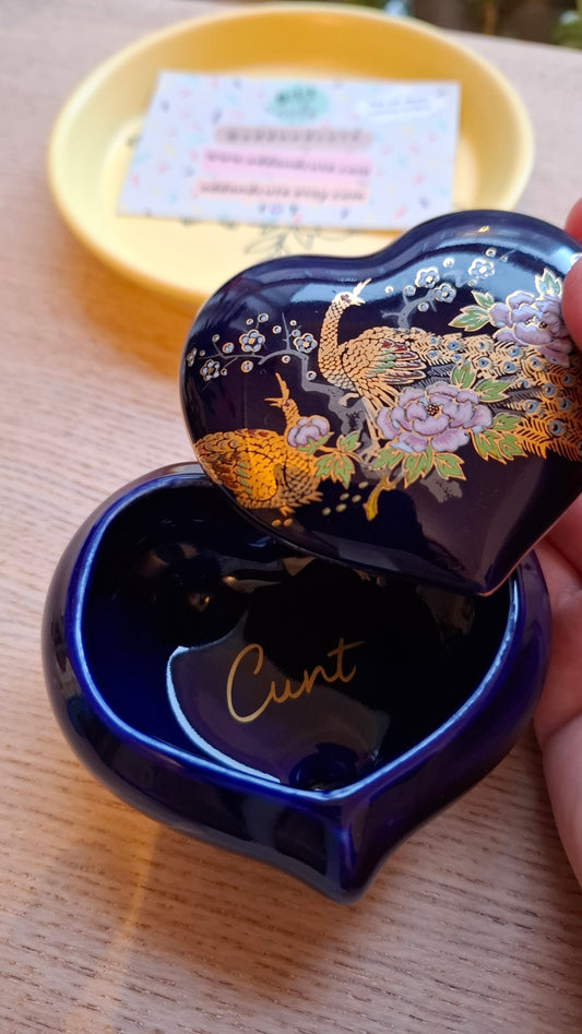 'Cunt' Upcycled Dark Peacock Trinket Pot