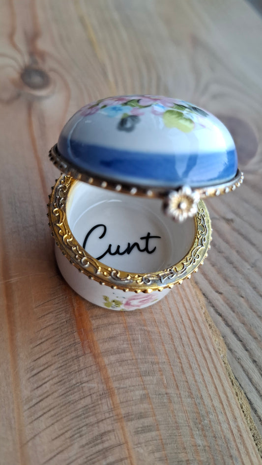 'Cunt' Upcycled Blue/White with Clasp Trinket Pot