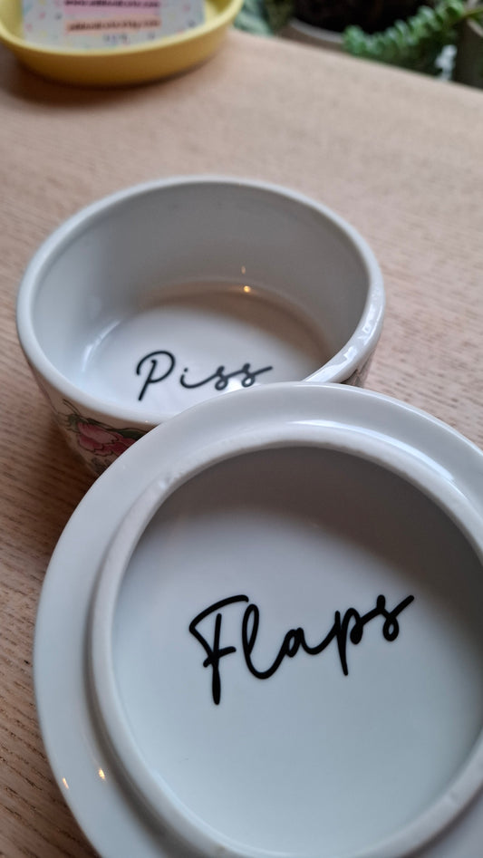'Piss Flaps' Upcycled Bright Floral Trinket Pot