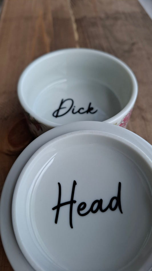 'Dick Head' Upcycled Butterfly and Flowers Trinket Pot