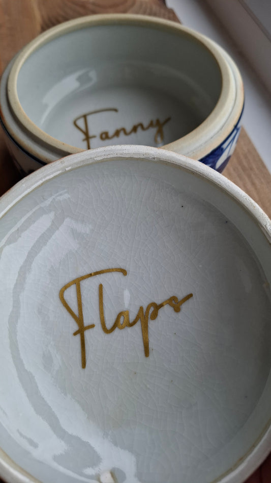 'Fanny Flaps' Upcycled Medium Sized Blue White Trinket Pot