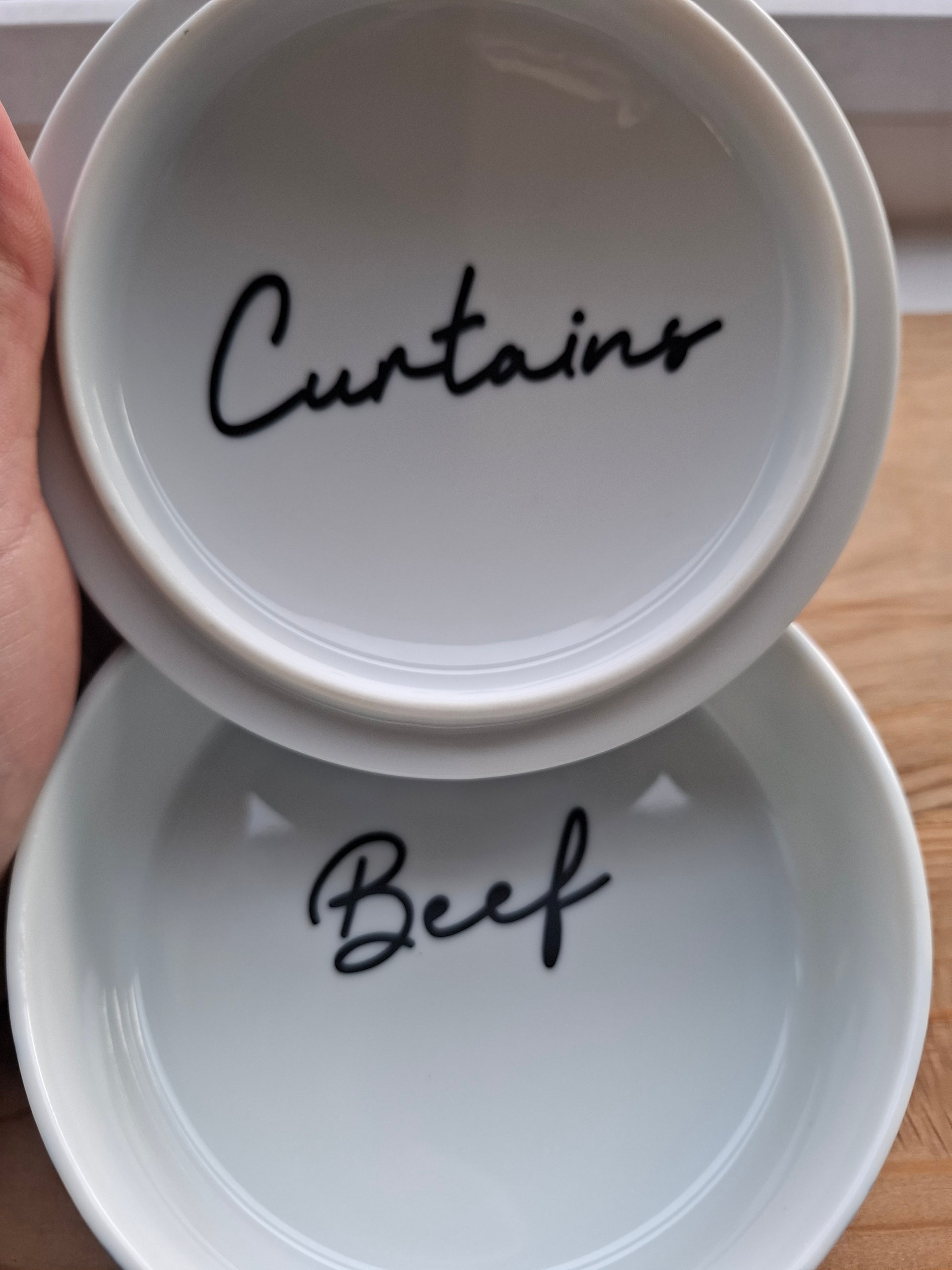 'Beef Curtains' Upcycled Large Round Blue/White Trinket Pot