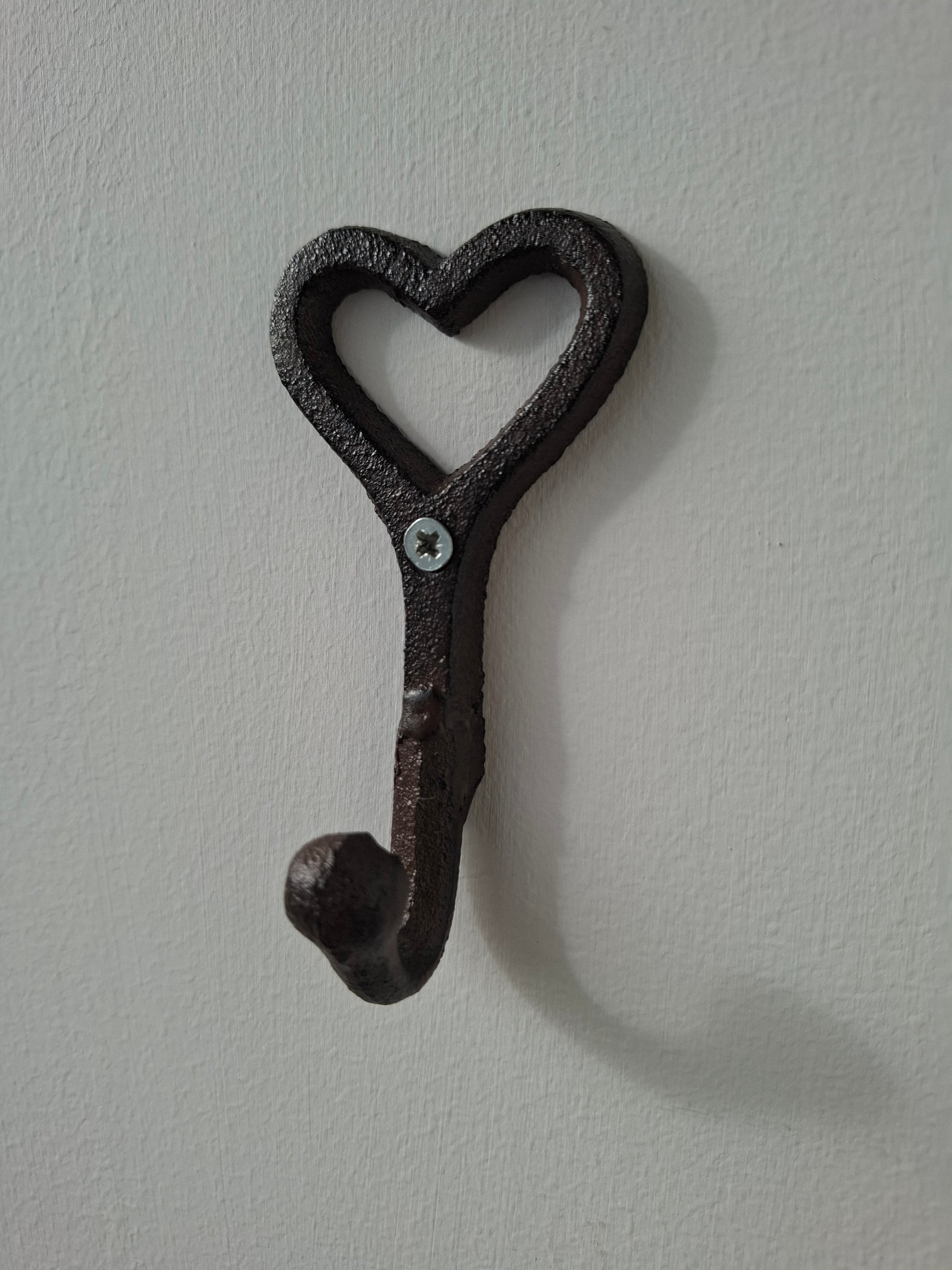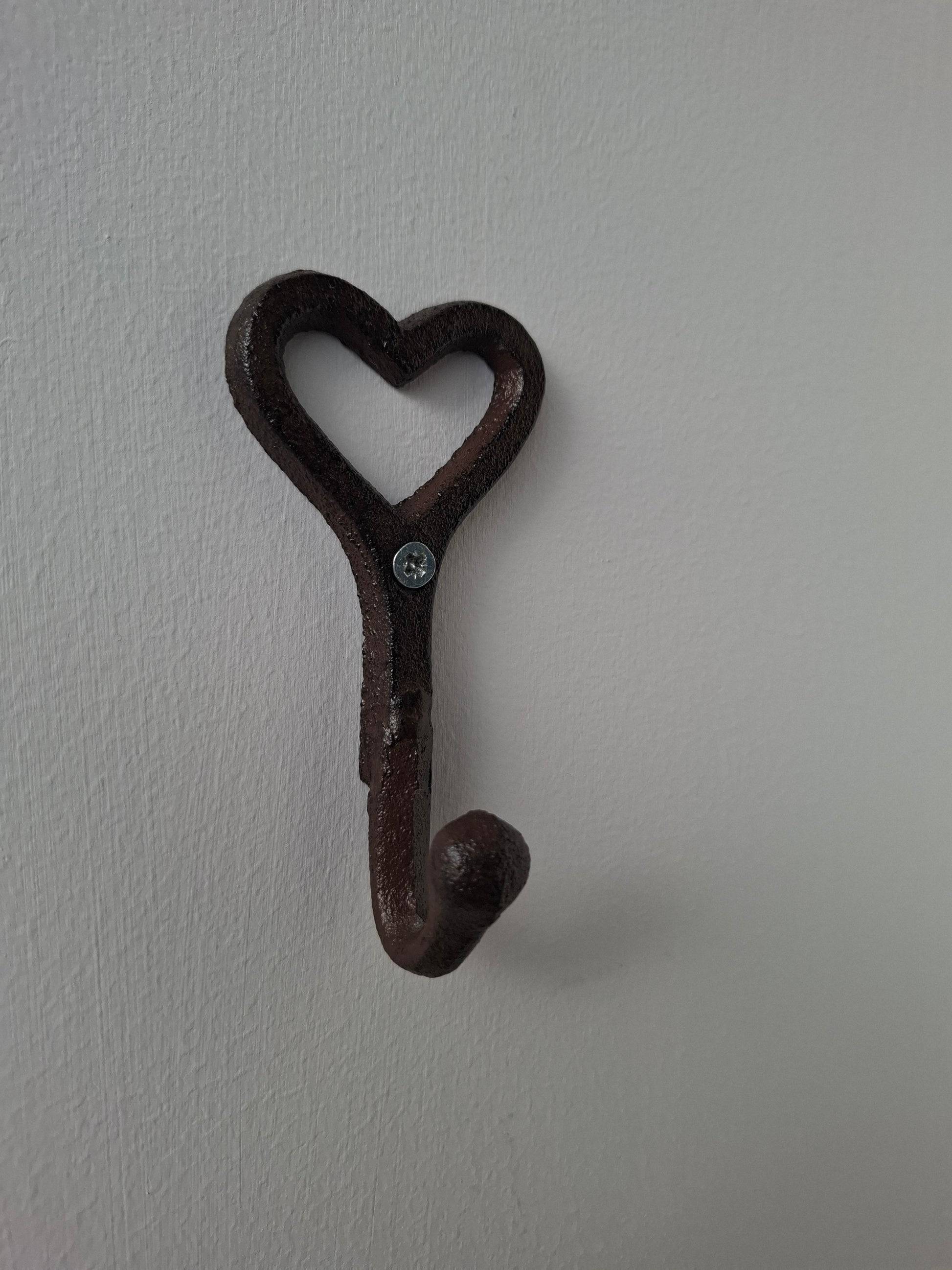 A pretty iron hook for hanging up bags, coats etc in the shape of a chunky heart