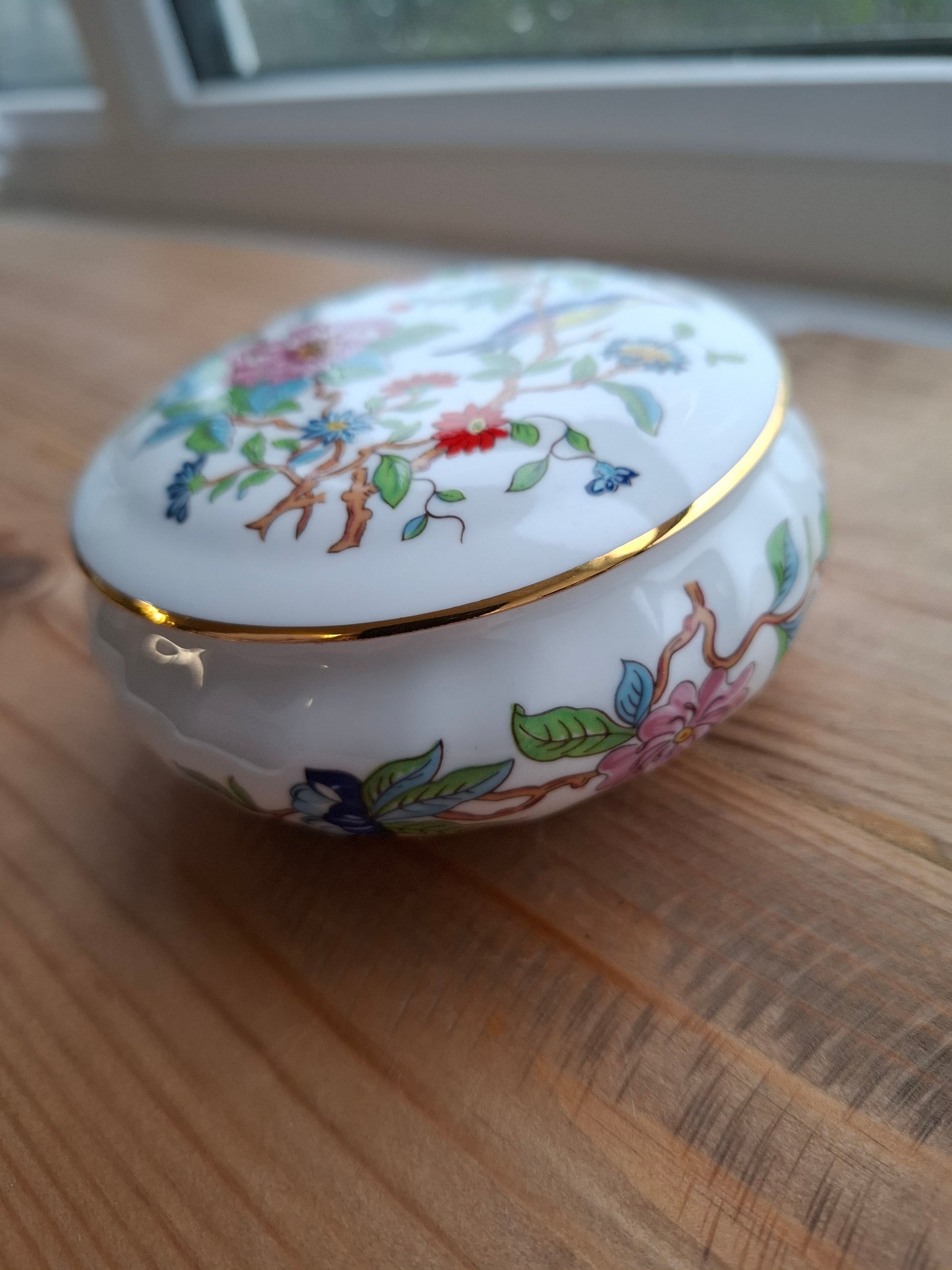 Medium sized ceramic trinket pot, with a floral design and a bird, sugar tits inside!