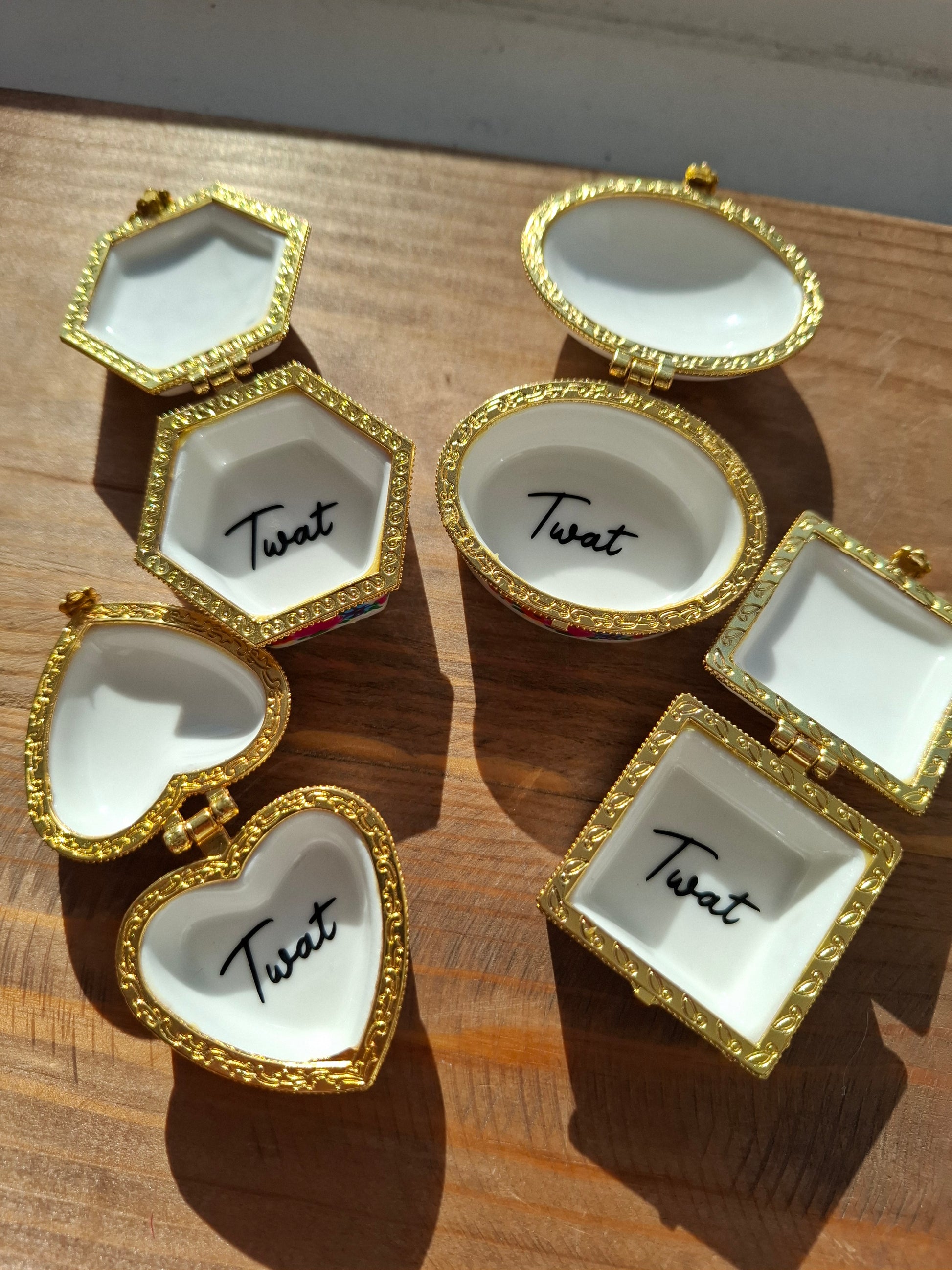 'Twat' Upcycled Mini Trinket/Pill Pot Red Roses