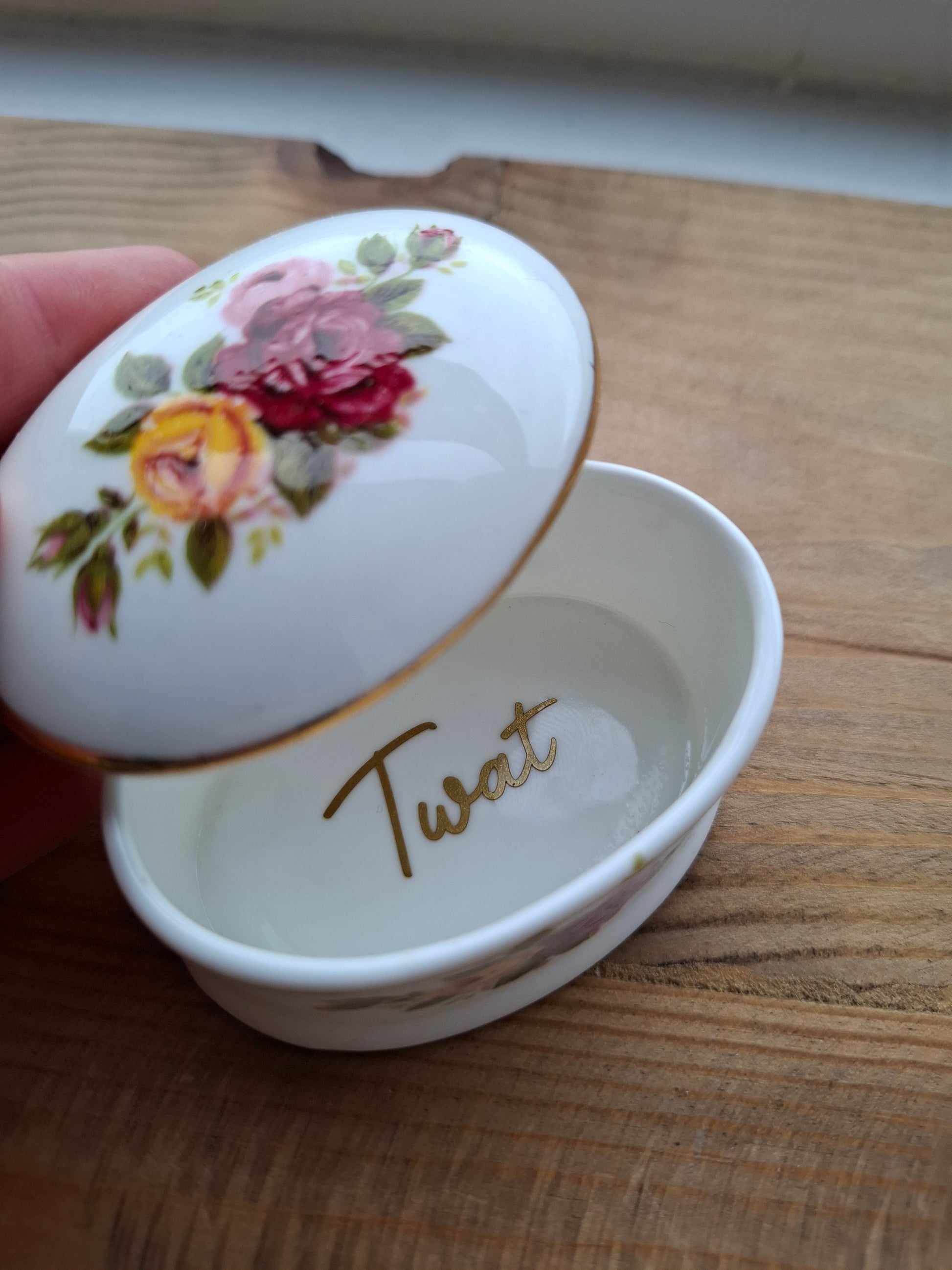 'Twat' Upcycled Small Cottage Rose Trinket Pot